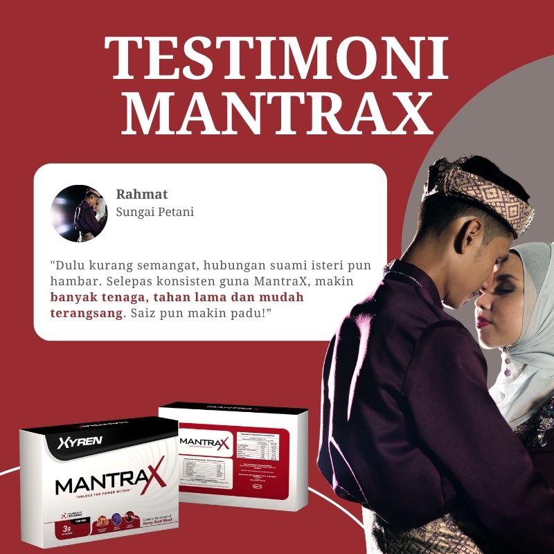 Kini sudah ramai lelaki berjaya stabilkan hormon, tahan lebih lama & zakar makin tegang serta saiz maksimum dengan amalan konsisten MantraX setiap hari.
